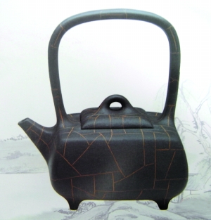 不久,骆耀明又创作出紫砂《观雨听石》,壶体采用不规则形,壶钮特意绞泥饰之,跃然高耸,色彩斑斓;壶把自然过渡,上部刻意用挑琢法,以增加石的苍桑年轮;壶嘴自然厚圆,法度遒劲……