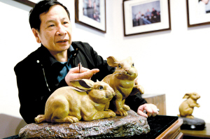 刘泽棉的作品《玉兔迎春》。/李星 摄