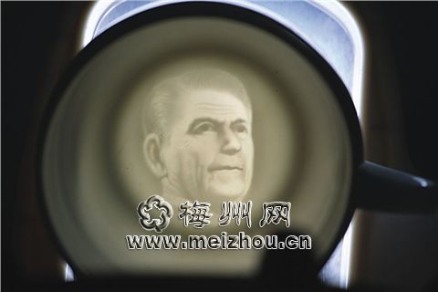 杯底显影图案为里根的肖像。