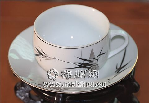 杯外图案为国画“瘦竹”。
