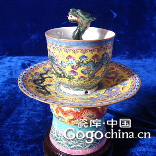 底款乾隆粉彩重工·高仿九龙公道杯