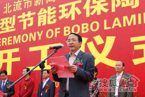 北流市委副书记及市长何东真先生在致辞中表示,BOBO新型节能环保陶瓷薄板项目落户北流,是北流科学开展大招商、招大商活动,加快承接公路转移示范市取得的又一重大成果。BOBO陶瓷薄板项目是投资大、技术新、能耗低的新型环保建筑陶瓷项目,开工建设不仅对发展壮大陶瓷产业,促进劳动就业有着现实的意义,为引领陶瓷企业走低碳道路,创节能品牌,加快转变发展方式,将起到积极引领作用。