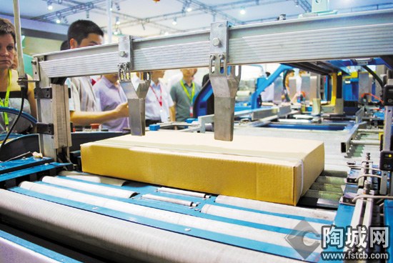 在展会现场,记者看到,大多数力推包装产品的企业,在展厅中的显示屏中都反复播放着包装线的包装视屏。从视屏中可以看到,大多数企业的包装线机械化水平已经相当的高,整个包装过程都无需人力操作,全部由机械代替,对于想通过机械自动化来解决企业招人难、用工成本高的陶瓷企业,将相当具有诱惑力。