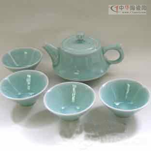 图:龙泉青瓷弟窑5头粉清茶具-清新素雅