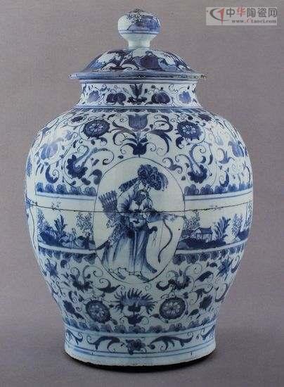 波斯人物青花罐。